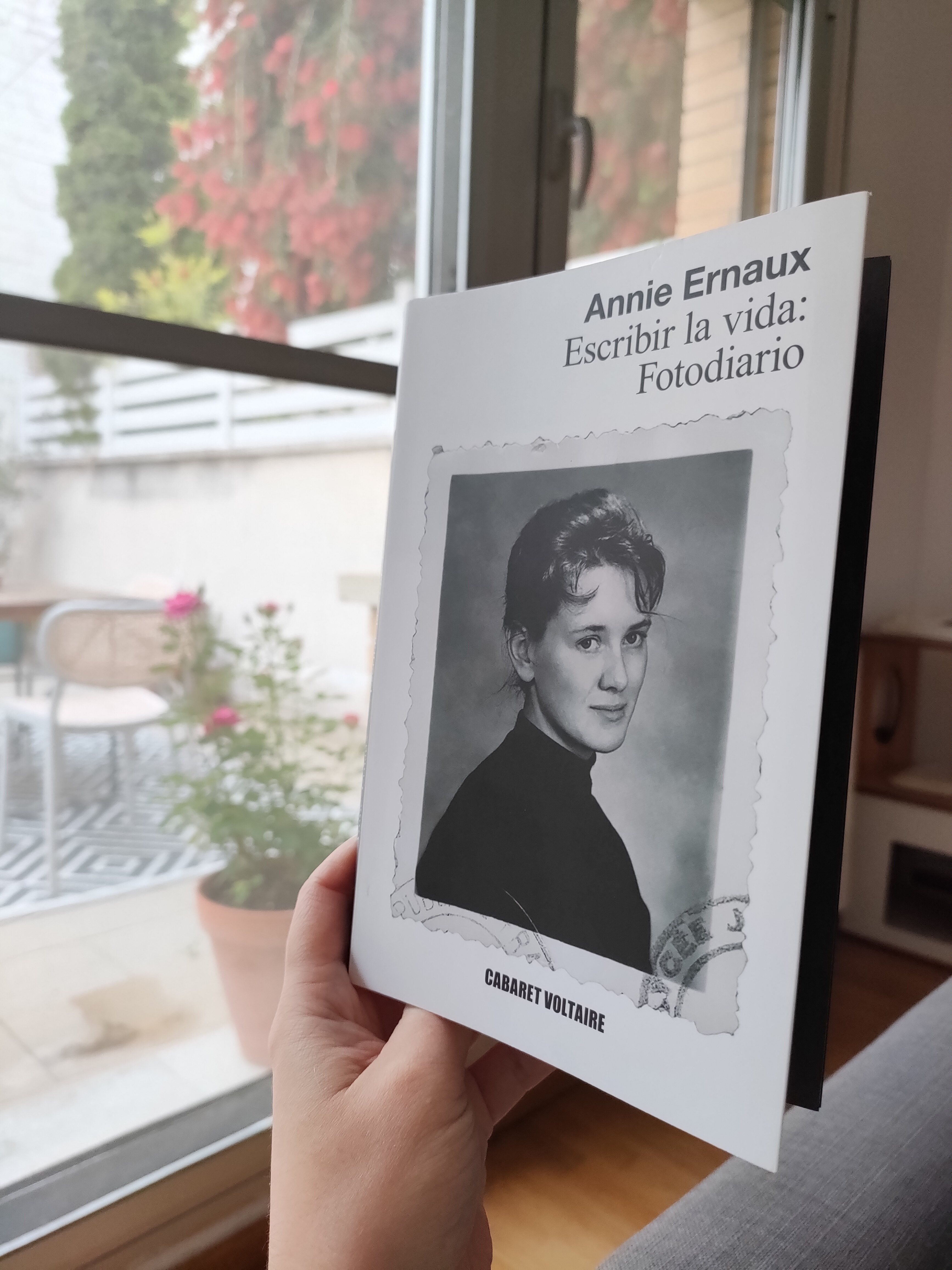 Por la anteriormente mencionada falta de quórum, en vez de estar repasando el contenido del taller o remeneando el orden de las ideas, pasé la tarde de ayer, domingo, leyendo el fotodiario de Annie Ernaux en esta preciosíma edición de Cabaret Voltaire, que han titulado Escribir la vida y que me compré en un impulso hace cinco días. Pocos libros míos gozan de semejante trato preferente; ser leídos inmediatamente tras su adquisición, pero el libro no solo ha recibido dicho beneplácito sino que para mi satisfacción, ha estado a la altura de éste.
