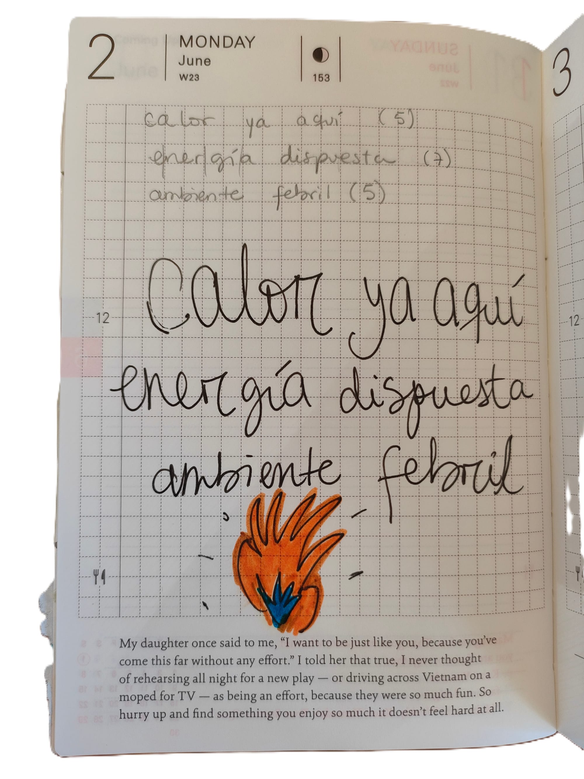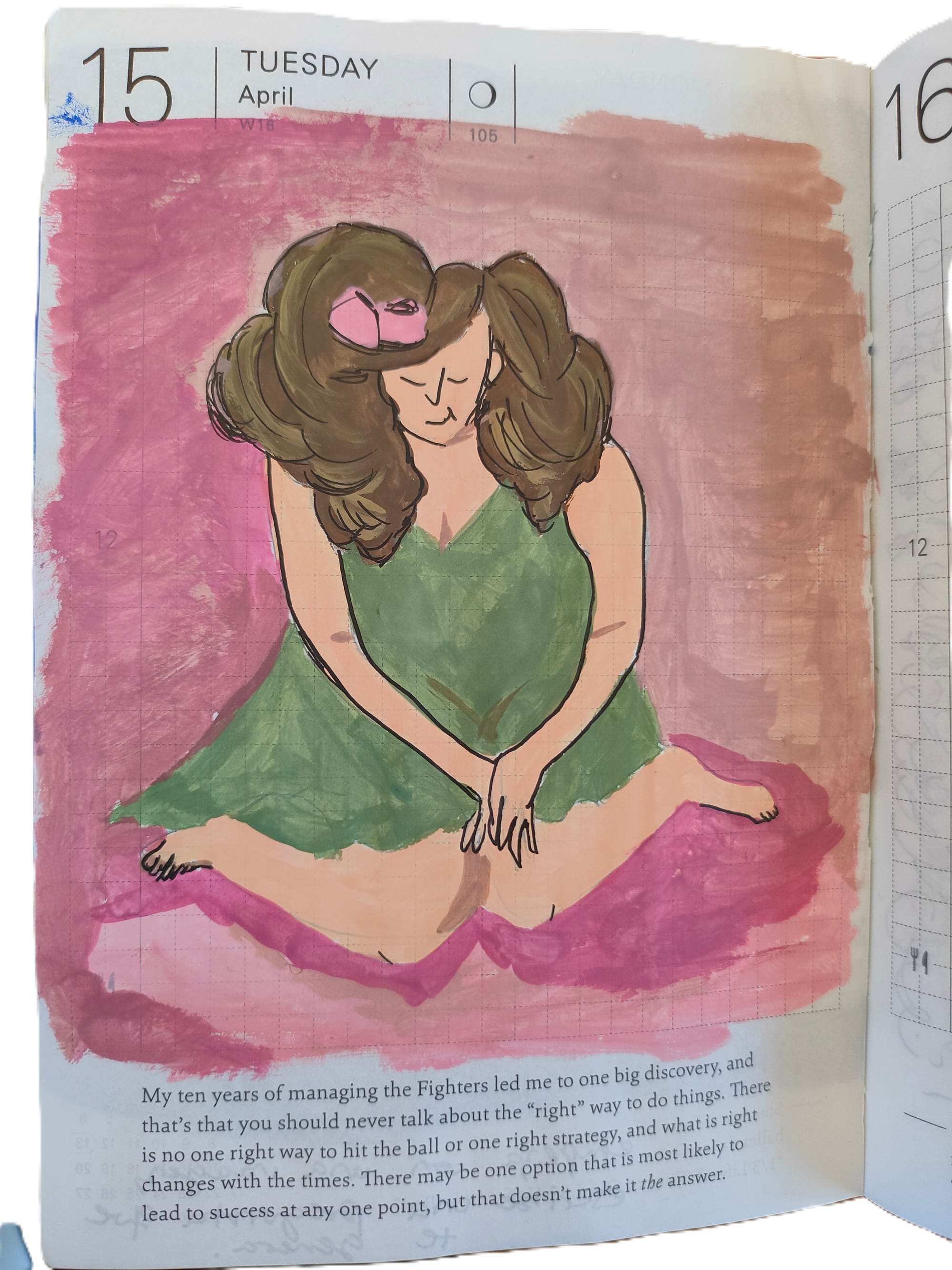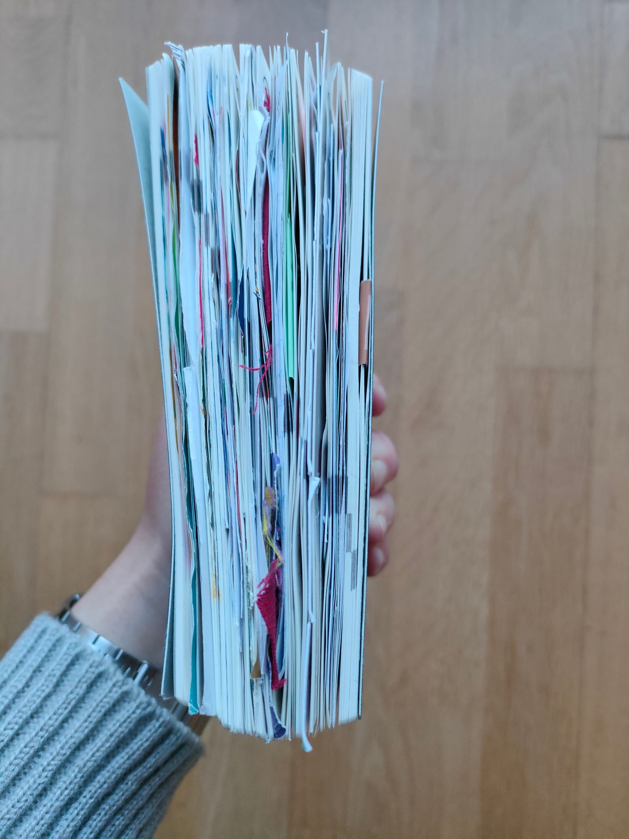 Con todo y esos matices, durante este año, como ya sabéis, jugué a ser artista textil pero además jugué a pintar con gouache por primera vez en mi vida, y a copiar posiciones corporales para dibujar, escribí mi primer haiku como me enseñó Vero, hice collages de varios libros de ficción que me encantaron y llevé lo que en internet se ha popularizado como un junk journal. Todo lo anterior lo hice dentro de una misma libreta A6 que ahora tiene tres veces su grosor original. Ya todo un tótem. También, después de una pausa de la que pensé nunca volvería, sigo saliendo a caminar sin distinguir un pino de un abeto.